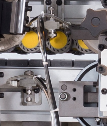 ![]() | Пресс группа Состоит из трех до прессовочных роликов, которые обеспечивают надежную фиксацию кромочного материала на торец заготовки.Диаметр допрессовочных роликов 70 мм.Контроль с помощью пневматики отдельным пневмоцилиндром на каждый ролик.Прижимные ролики подходят для прижатия кромочного материала различной толщины на торец заготовки для минимизации клеевого шва. |