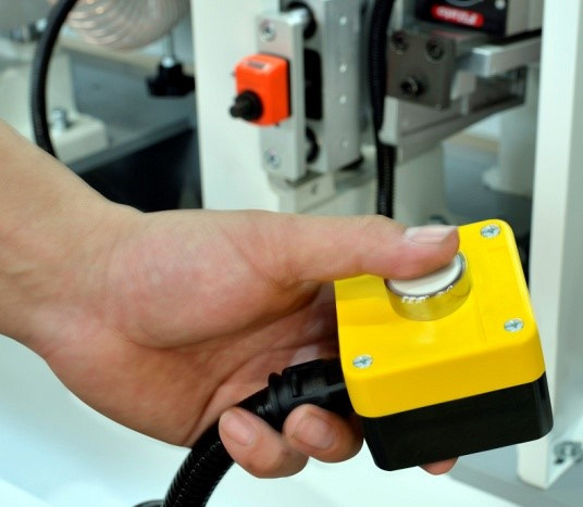 ![]() | Системы безопасности Контроль толщины заготовки расстояния между деталями.Пневатический палец контролирует расстояние между деталями и не позволит подать заготовку раньше времени. Защита узла чистовой торцовки.Измеритель толщины детали остановит конвейер при подаче заготовки большей толщины. Защита механизмов подачи и прижимной балки.Аварийная кнопка расположена в доступной для оператора зоне и позволяет остановить станок при возникновении нештатной ситуации. |