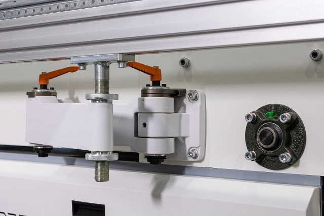 Высота прижимной балки настраивается автоматически электроприводом в зависимости от толщины детали. Толщина задается с пульта управления.