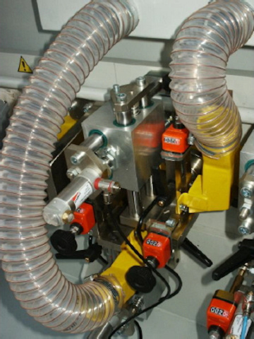 ![]() | Фрезерный узел снятия свесов Два промышленных двигателя (12 000 об/мин) 2 х 0,55 кВт;Мощность двигателей 0,55 кВт позволяет фрезеровать кромку с припуском на сторону больше 2 мм;Имеется возможность поворота фрезерного узла 0 - 20°;Оснащены счетчиками точной настройки на разную толщину кромки;Копиры круглые большого диаметра осуществляют плавный заход на деталь; исключают повреждение любой облицованной поверхности;Имеется пневмоперестановка узла, которая позволяет моментально настроить фрезерный узел на два типа кромки. Управление осуществляется с пульта. |