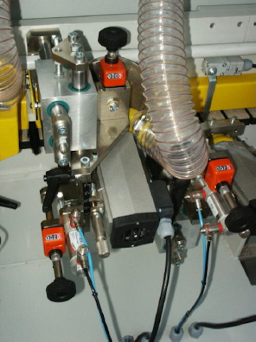 ![]() | Панель управления Экран дисплея отображает настройки и рабочие параметры: температуру клея, индикацию работы узлов станка. Настройка на разную толщину кромки производиться с пульта. |