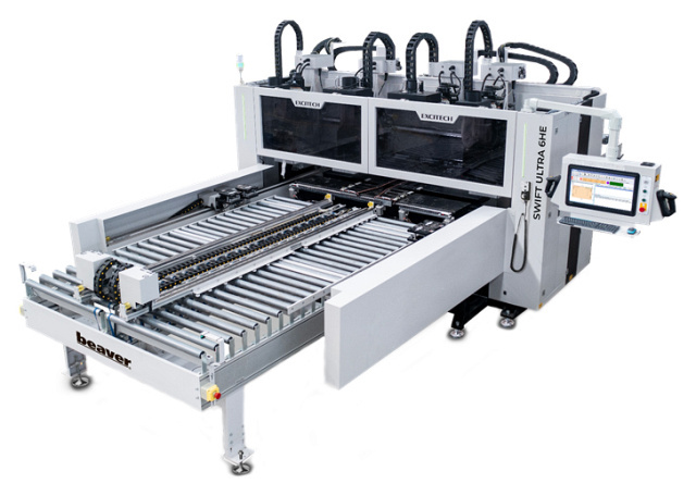 Beaver SWIFT ULTRA 6HE - это современный высокопроизводительный шестиголовый сверлильно-присадочной центр с ЧПУ, предназначен для высокоточного сверления сквозных и глухих отверстий в торцах и плоскостях мебельных щитов с 6 сторон, а также выборки пазов при помощи пазовальных пил и фрезерной обработки с помощью четырёх фрезерных агрегатов (2 сверху + 2 снизу). Центр обеспечивает сверление всех карт присадки за одну установку детали, а также имеет две независимые рабочие зоны и поддерживает одновременную пакетную обработку двух деталей.