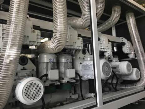 Прижимные плиты перед верхними шпинделями выполнены с пневматической регулировкой для обеспечения максимальной стабильности прижима массивных заготовок.