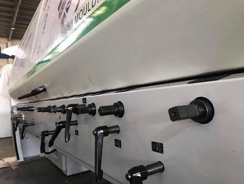 Гидрозажимные контропоры на 5 и 6 горизонтальных шпинделях позволяют устанавливать на станок тяжелый инструмент для профилирования бруса естевственной влажности.