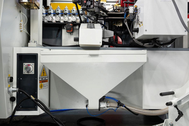 ![]() | Автоматическая загрузка клея Станок оснащен автоматической загрузкой гранулированного клея. Нижний бункер объемом 25 кг расположен внутри станины станка. Гранулы клея транспортируются в верхний бункер с предрасплавом с помощью воздушного потока. Встроенный датчик уровня в бункере. |
