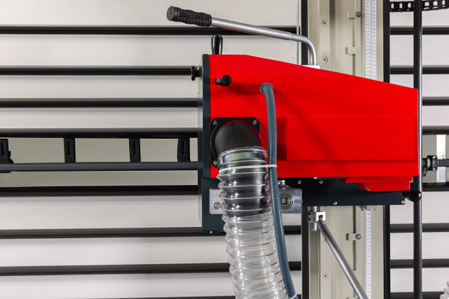 Благодаря системе перемещения пильного узла относительно листа материала без его перебазирования производительность станка может достигать до 80 листов в 8-часовую смену. Перенастройка положений легко осуществляется вручную.
