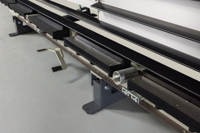Для удобства перемещения материала в рабочую зону, станок оснащен алюминиевыми роликами качения в нижней части станка. Они же служат опорной базирующей поверхностью.