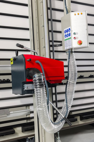 Вертикальная компоновка рабочего стола позволяет значительно сократить площадь, необходимую для операции раскроя. Рабочий стол станка позволяет раскраивать листы размером 4100 х 2220 мм (2100 мм – с подрезной пилой).