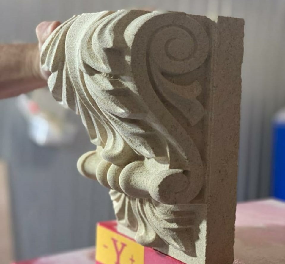 Высокая частота вращения (24 000 об/мин) и достаточная мощность (5,5 кВт) дает возможность осуществлять обработку деталей из камня, а также ДСП, МДФ, пластика, акрила и других материалов для изготовления мебели, дверей, рекламной и сувенирной продукции.