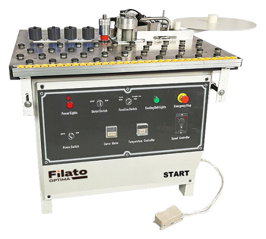 Универсальный классический кромкооблицовочный станок с ручной подачей Filato NOVA START на сегодняшний момент один из самых качественных станков данного типа. Спроектирован и рассчитан на полноценную ежедневную рабочую смену. Предназначен для облицовывания прямолинейных и криволинейных кромок плитных материалов рулонными кромками АБС, ПВХ и полосовым кромочным материалом толщиной до 3 мм.