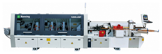 Автоматический кромкооблицовочный станок Nanxing NB6JQF используется на средних и крупных мебельных и столярных производствах для изготовления корпусной мебели и дверей.