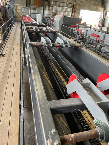 ![]() | Приводные цепи На каждом луче установлена сдвоенная зубчатая цепь, устойчивая к высоким скоростям подачи и имеющая повышенную стойкость к растяжению. За счет сдвоенной системы обеспечивает большую площадь соприкосновения с заготовкой и позволяет пилить готовую обрезную доску до 250 мм (опция до 300 мм) по ширине. |