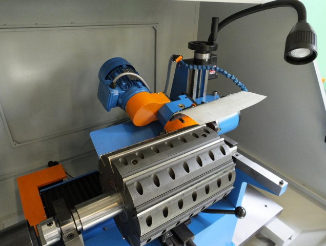 Автоматический станок с ЧПУ предназначен для заточки строгальных ножевых головок (барабанов) по задней грани, применяемых в деревообработке и обработке полимерных материалов и пластиков.