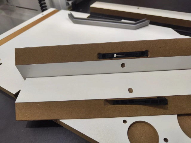 Так же при наличии необходимого опционала, возможна врезка под фурнитуру типа Lamelo под углом 45 ° (дополнительная наклонная плоскость).