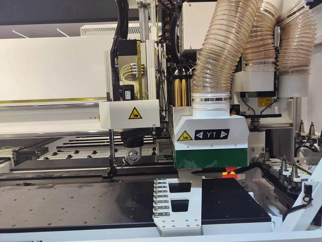 Управляемые шиберы на аспирационных патрубках, централизованная система смазки, быстросъемные кожухи на сверлильных головах, дублирование кнопок управления, обдув рабочей зоны столов, оптических датчиков, центральный базирующий упор прямоугольного сечения, датчик измерения длины.