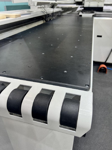 ![]() | Загрузка деталей Рабочий стол оборудован независимой системой воздушного поддува для плавного перемещения материала без повреждения лицевых сторон. Поверхность столов выполнена их жестких, износостойких плит для более длительного срока службы. В начале стола установлены ролики для облегчения загрузки длинных и тяжелых деталей. |
