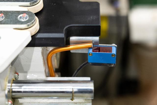 ![]() | Автоматическая система прижимов деталей при перемещении Для горизонтального перемещения детали применяется программно управляемый прижим с роликами. Он автоматически настраивается сервоприводом на необходимую ширину заготовки, предотвращая её смещение при движении по рабочему столу. |