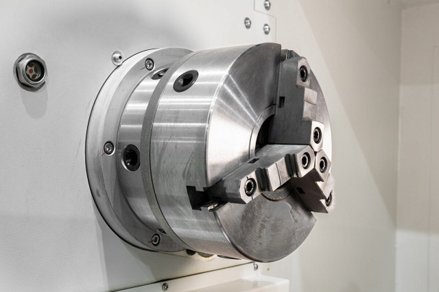KE80/2000 HCNC  Механический 3-х кулачковый патрон  Патрон применяется для зажатия заготовки в процессе обработки, в зависимости от модели станка 3-х кулачковый патрон поставляется диаметром 160 мм, 200 мм, 250 мм, 320 мм, 400 мм Механический 3-х кулачковый патрон