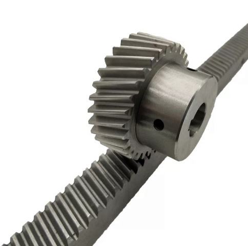 ![]() | Зубчатая рейка (Тайвань) В отличие от передач с прямыми зубьями, косые входят в зацепление постепенно, а не сразу по всей длине. Косозубое зацепление не имеет зоны однопарного зацепления. В прямозубой передаче нагрузки на зубья прикладывается мгновенно. Зубья в косозубых передачах нагружаются постепенно по мере захода их в зону зацепления, в зацеплении всегда находится как минимум две пары зубьев. Данные факторы определяют плавность работы косозубого зацепления, а также снижение шума и дополнительных динамических нагрузок по сравнению с прямозубым зацеплением. |
