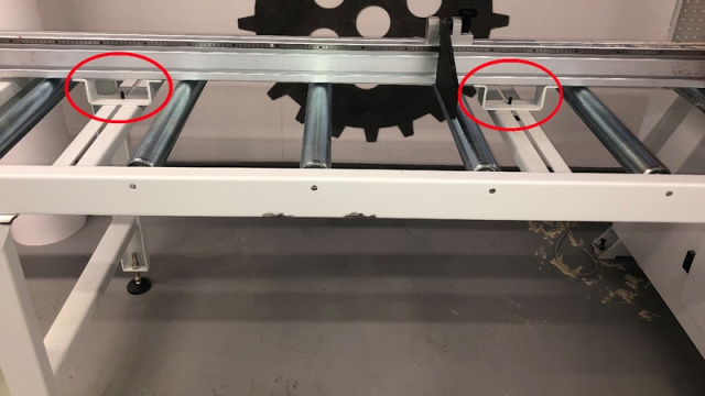 ![]() | Приставные рольганги Станок укомплектован приставными рольгангами с миллиметровыми шкалами. Рольганги имеют габаритные размеры: Приемный рольганг укомплектован массивным флажковым упором длиной 200 мм и толщиной 10 мм. |
