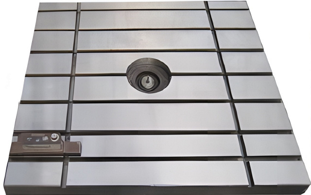 ![]() | Передняя бабка Стол установлен сверху на поперечном суппорте (движется по оси X), а последний установлен на суппорте, который перемещается по направляющим станины в продольном направлении (ось Z). Стол вращается на гидростатическом подшипнике поперечного суппорта большого диаметра с оптическим проектором и четырьмя блоками позиционирования, установленными в точках 90°, 180°, 270° и 360° для точного индексирования и позиционирования. Стол можно легко заблокировать и разблокировать. |